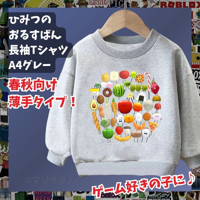 ひみつのおるすばん 長袖Tシャツ トレーナー灰色グレー ROBLOXロブロックス 薄手タイプ トップス 90 100 110 120 130 140 150 子供服キッズ服 KK
