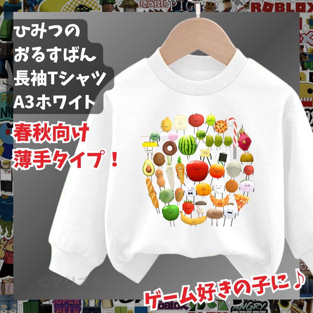 ひみつのおるすばん 長袖Tシャツ トレーナー白ホワイト ROBLOXロブロックス 薄手タイプ トップス 90 100 110 120 130 140 150 子供服キッズ服 KK