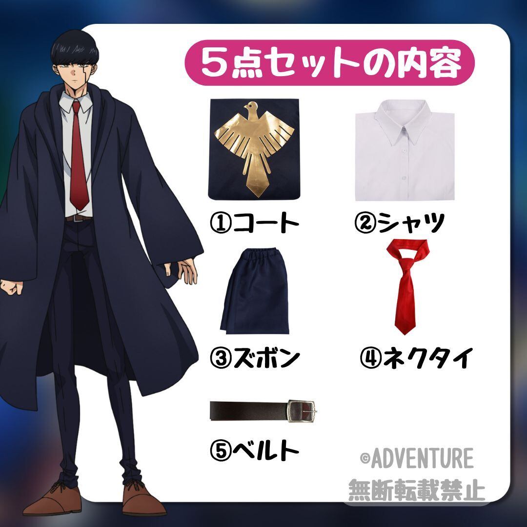 セット内容はローブ(コート上着アウター)、シャツ、ネクタイ、ズボン、ベルトとなっています。