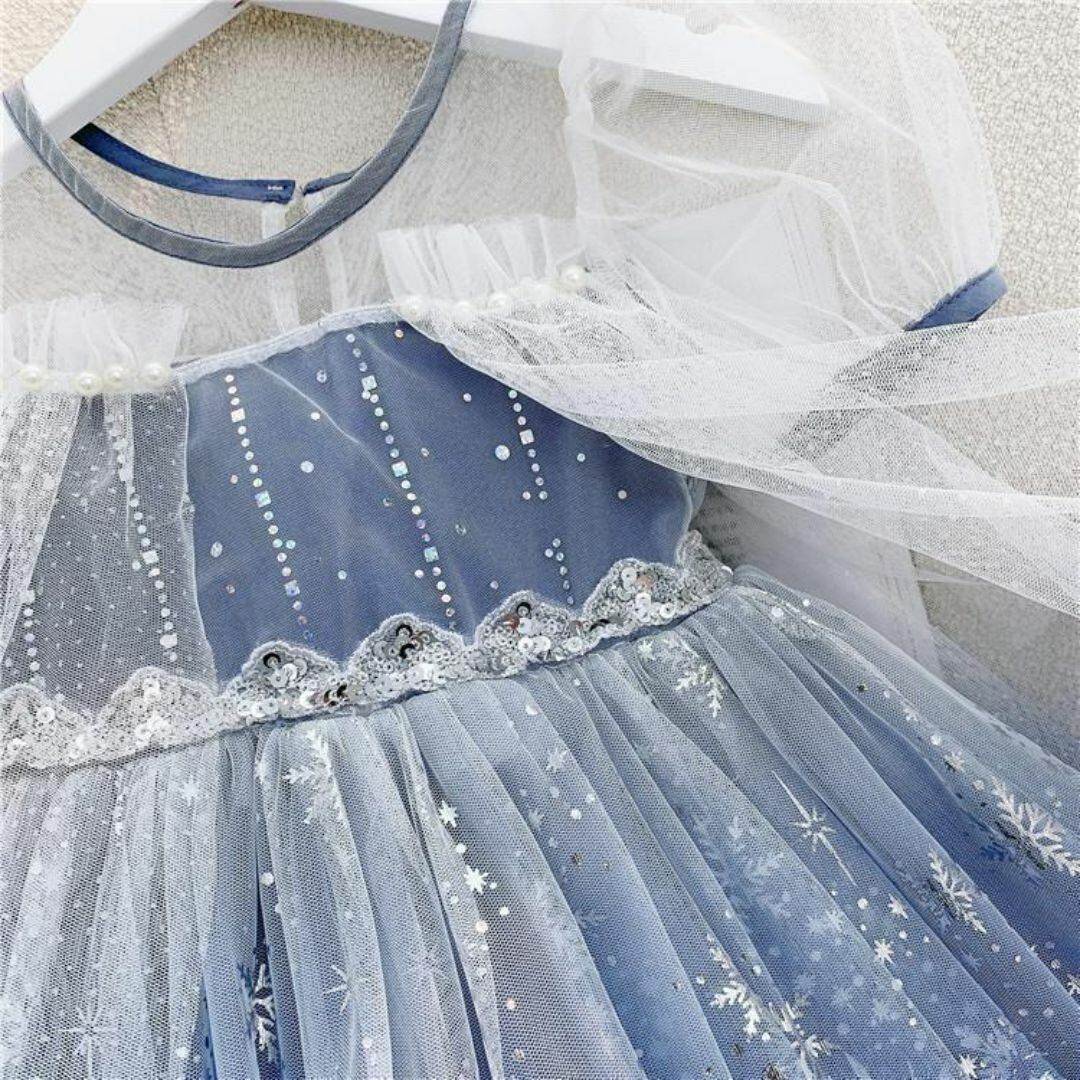 キッズ 女の子 アナ雪 エルサ風 ドレス 100 120 130 140 150 ディズニー水色 ブルー 青 アナと雪の女王 風 ワンピース コスプレ 子供 プリンセスDハロお姫様コスチューム衣装ハロウィン仮装 ガールズ レース キラキラ かわいい【arc】