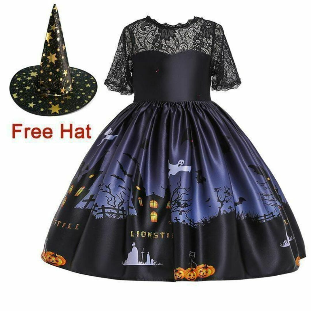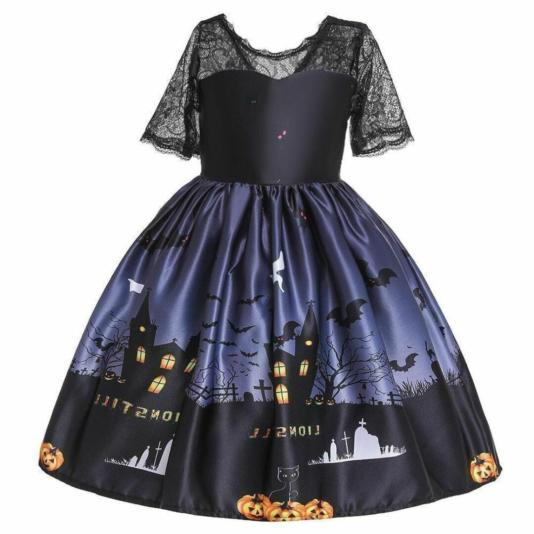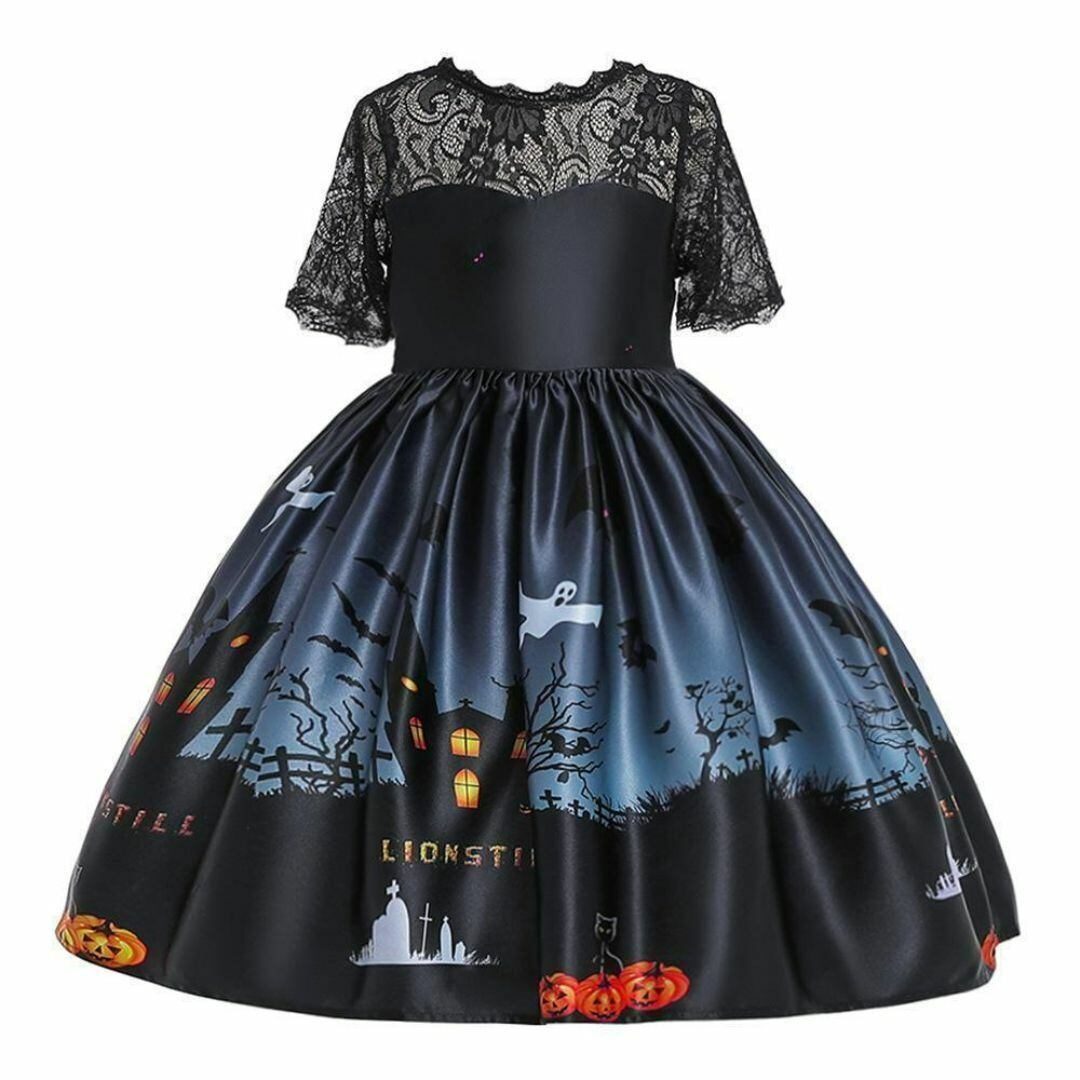ハロウィン 女の子ドレスE 100 110 120 130 140 150 ワンピース黒ブラック子供キッズ魔女かわいい【arc】