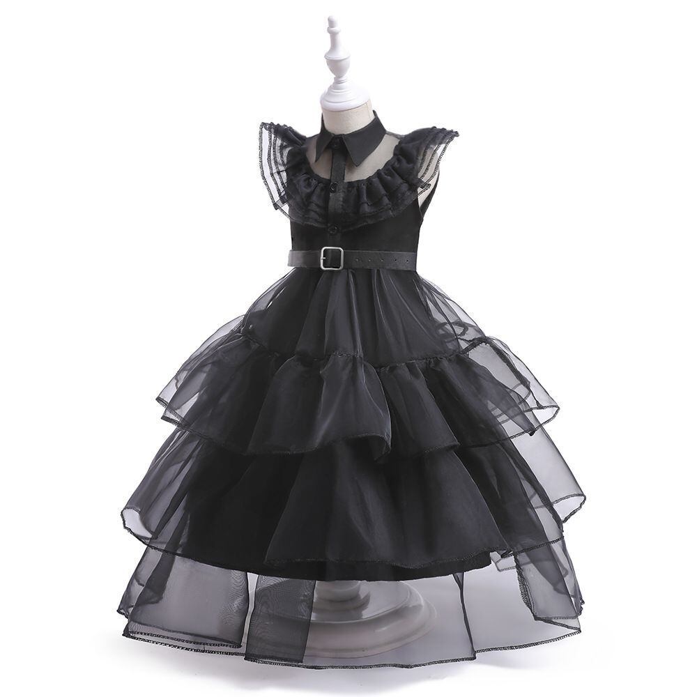 アダムスファミリー wednesday風 女の子ドレス 100 110 120 130 140 150 ワンピース黒ブラック子供キッズ魔女かわいい