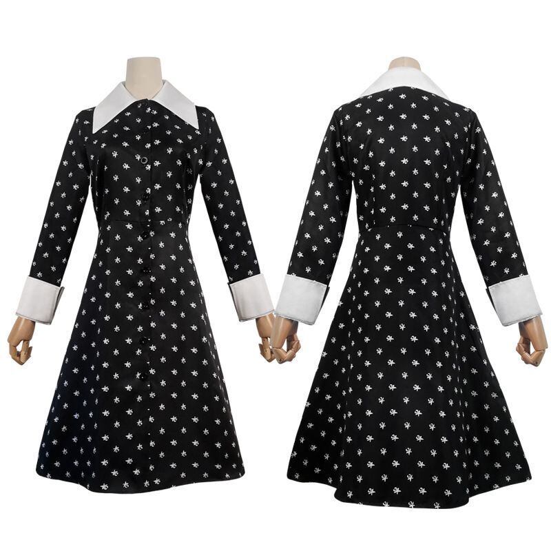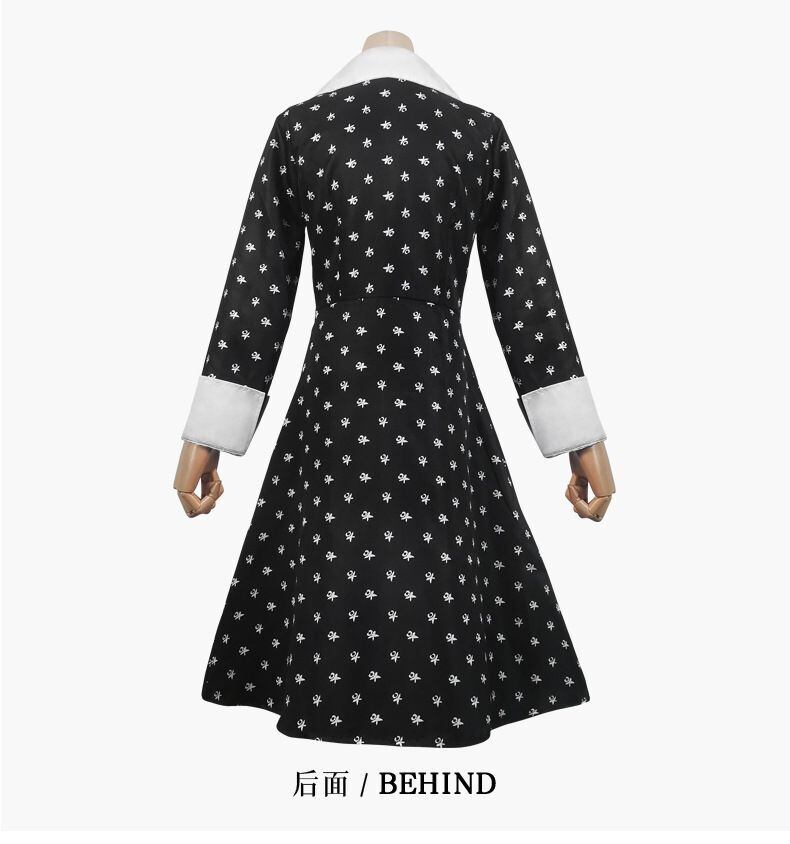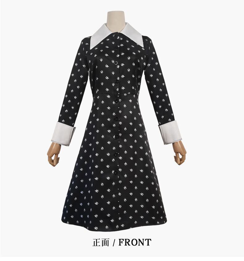 アダムスファミリー wednesday風 ドット女の子ドレス 110 120 130 140 150 ワンピース黒ブラック子供キッズ魔女かわいい