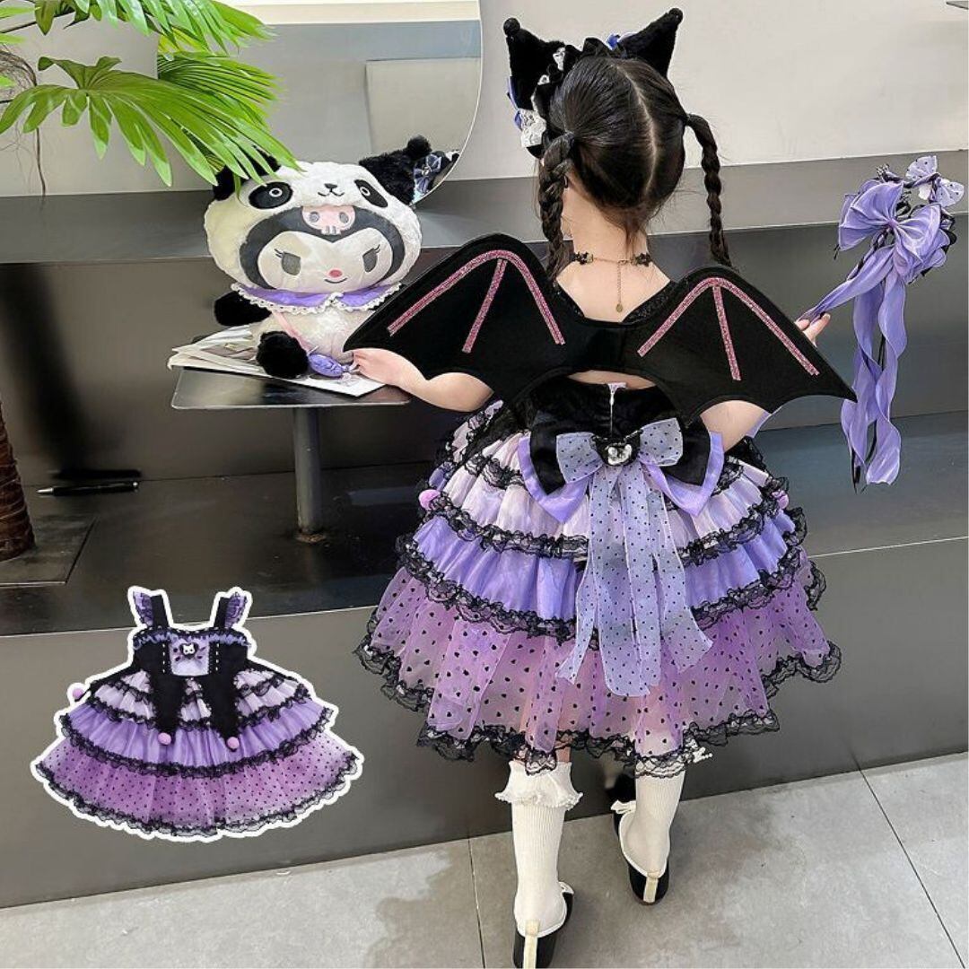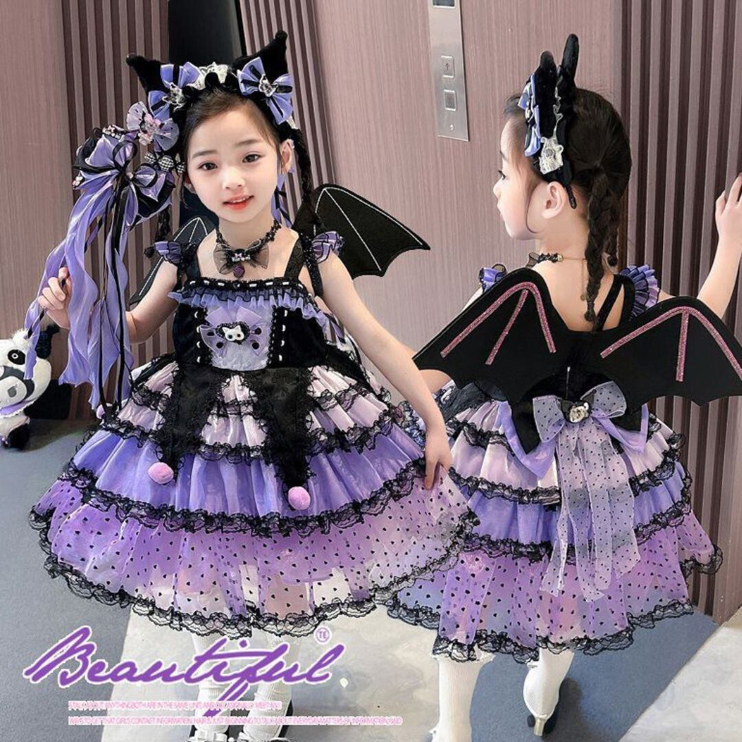 ハロウィン コスプレ女の子ドレスA 子供キッズ クロミ風ロリータ ワンピース90 100 110 120 130 140 150 ブラック黒コスチューム衣装 魔女かわいい
