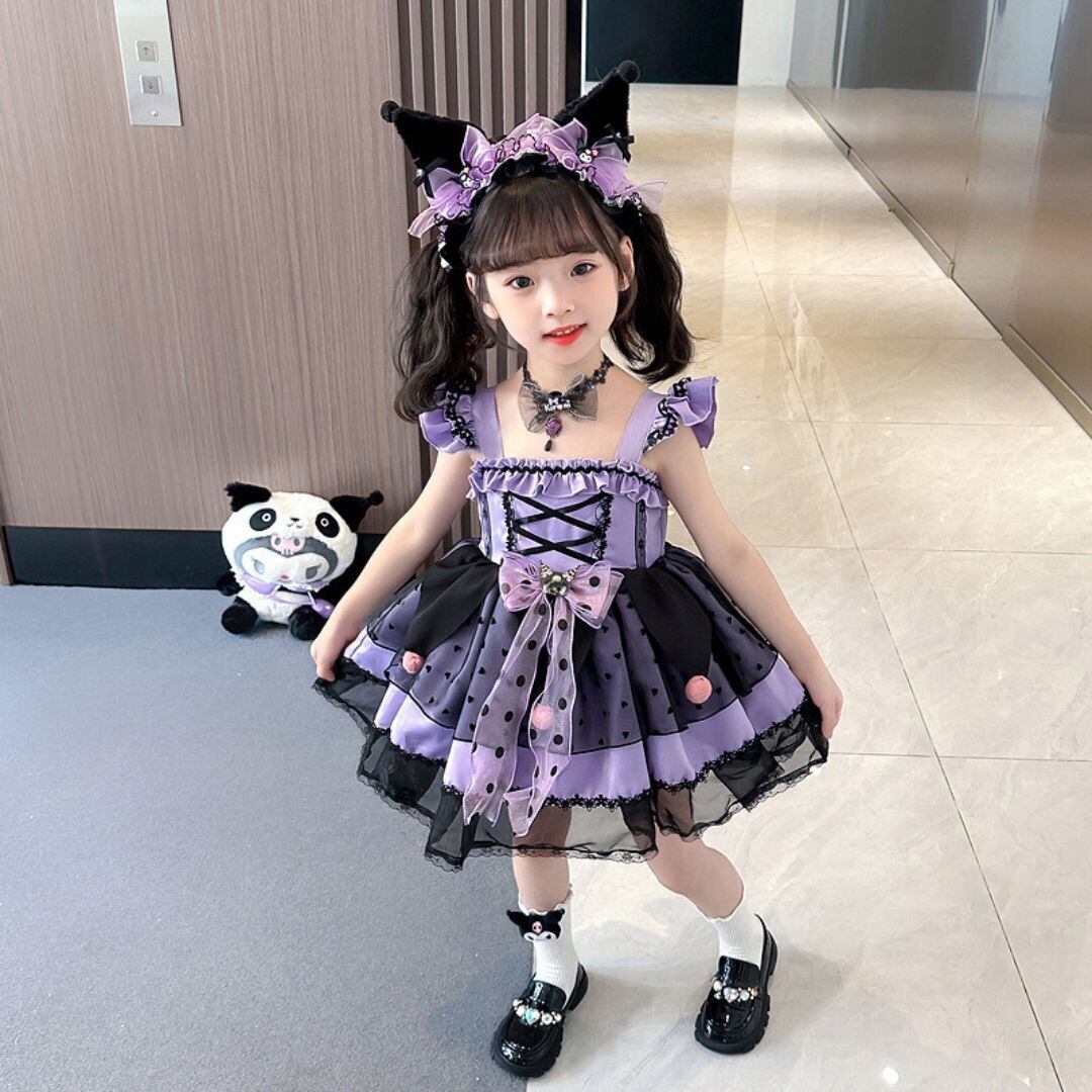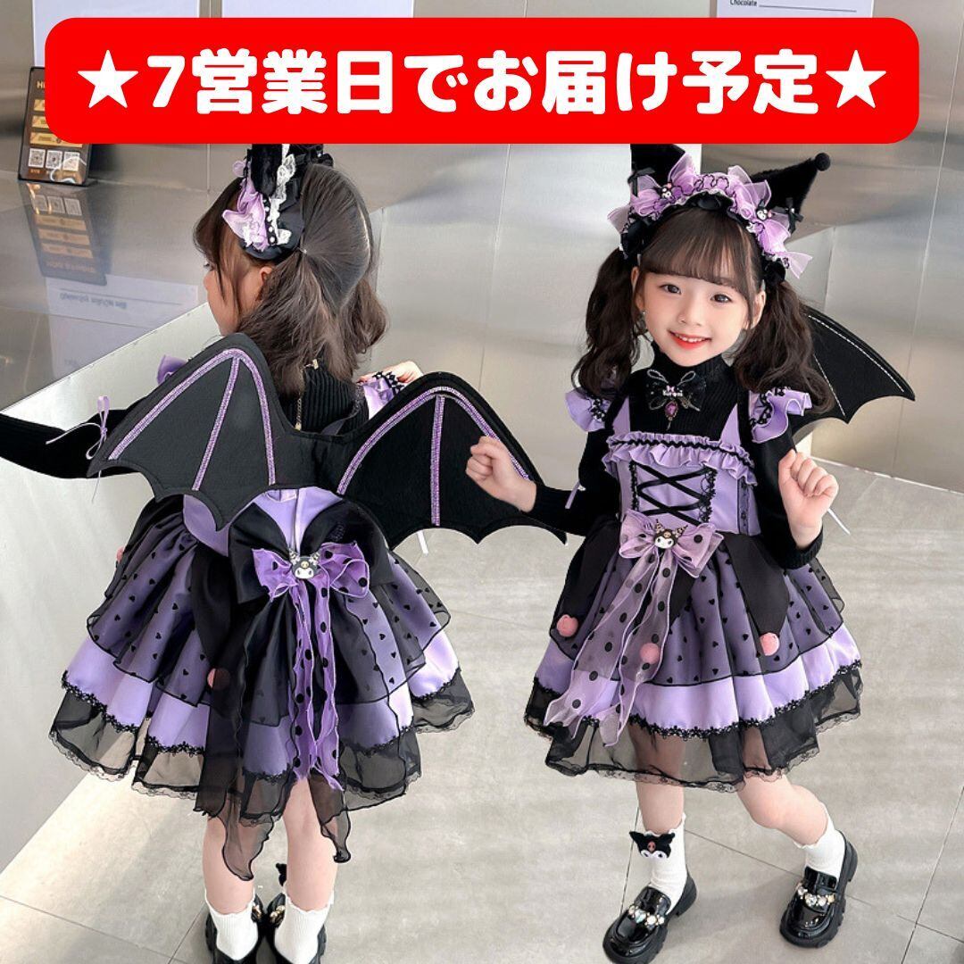 ハロウィン コスプレ 女の子ドレス B 子供キッズ クロミ風 ロリータ ワンピース 100 110 120 130 140 150 ブラック黒コスチューム衣装 魔女かわいい 小悪魔 クリスマス