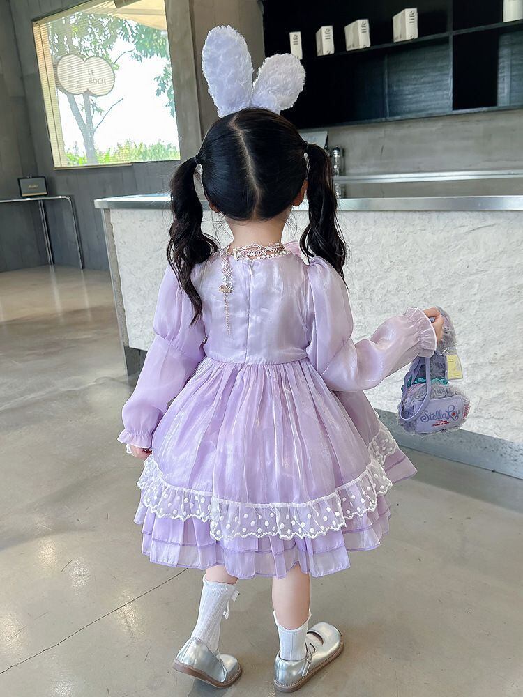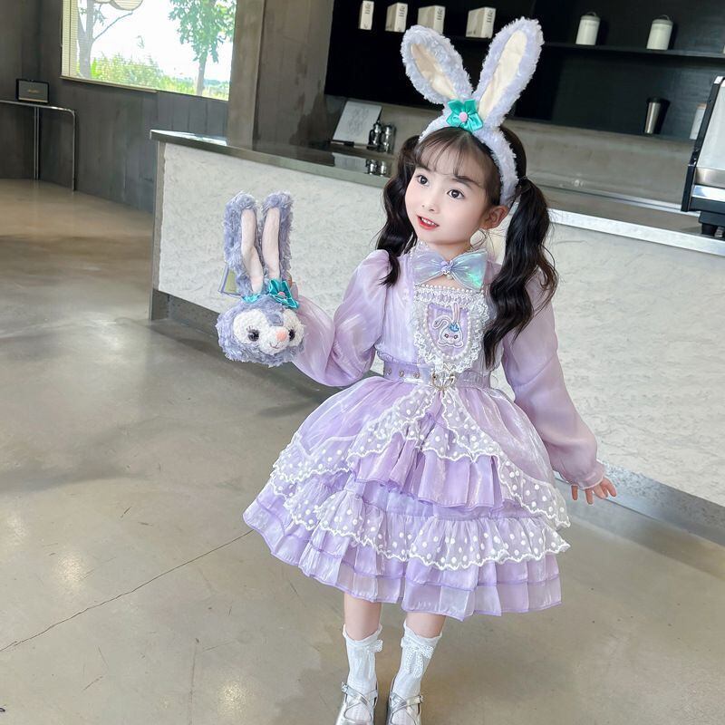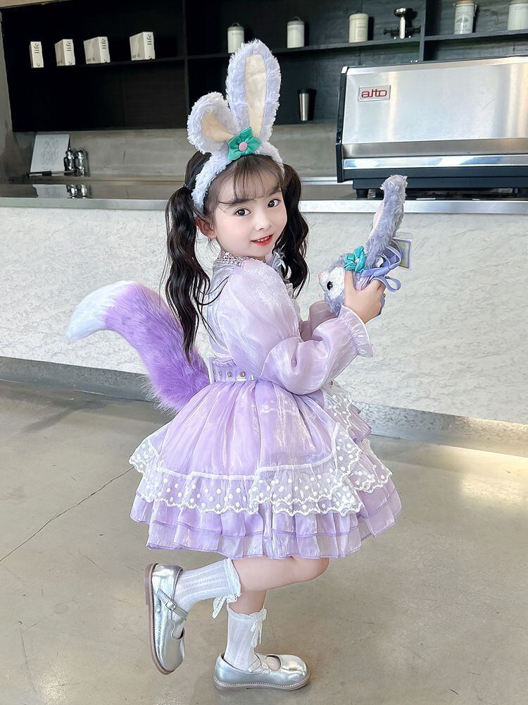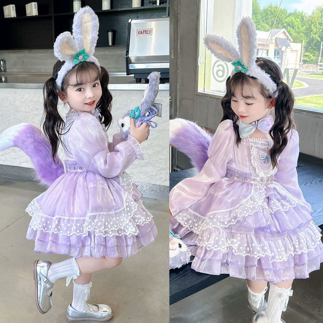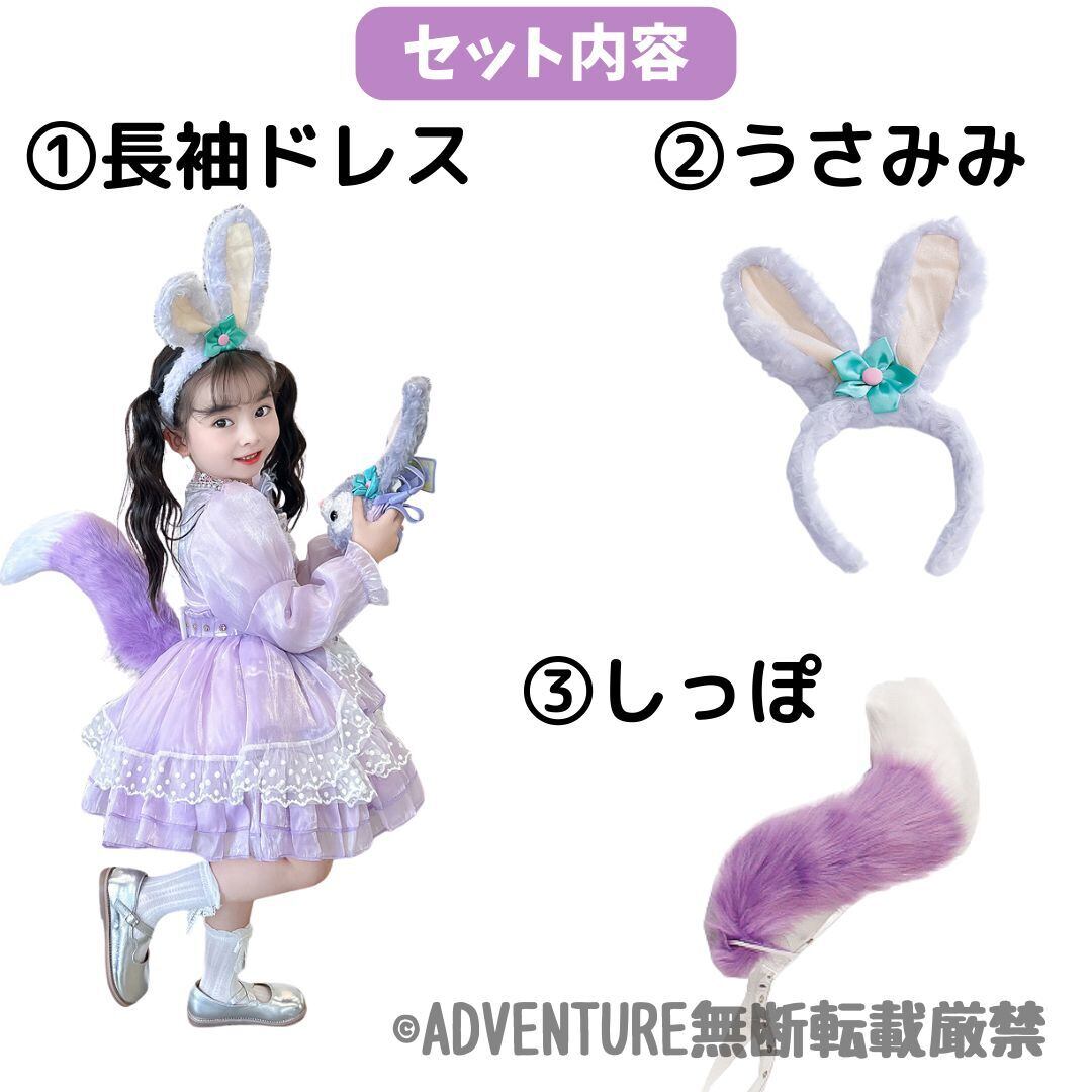 ハロウィン コスプレ女の子ドレス 子供キッズ長袖ステラルー風ロリータ ワンピース100 110 120 130 140 150 コスチューム衣装うさ耳かわいいウサギ紫パープルうさぎ しっぽ