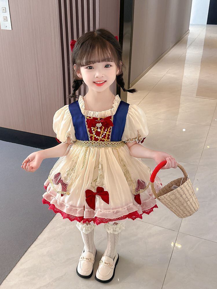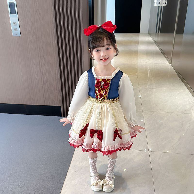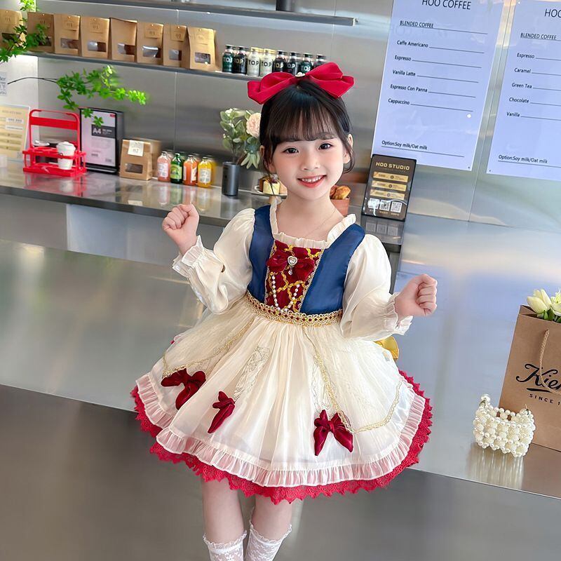 ハロウィン コスプレ女の子ドレス 子供キッズ長袖 白雪姫プリンセス風ロリータ ワンピース100 110 120 130 140 150 コスチューム衣装リボン