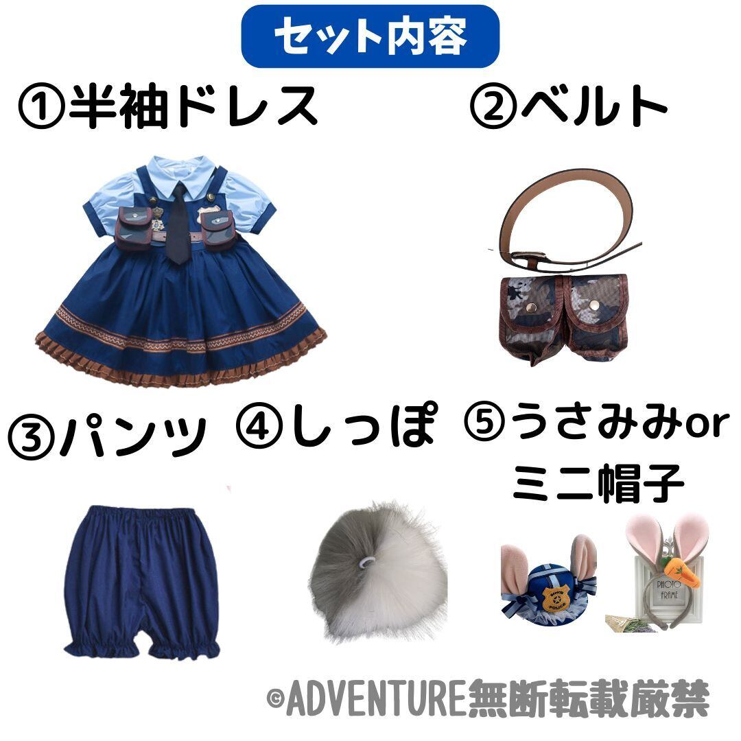 ロリータっぽいチュールスカートが印象的なズートピアのジュディ・ポップスのようなワンピース5点セット 半袖タイプです。