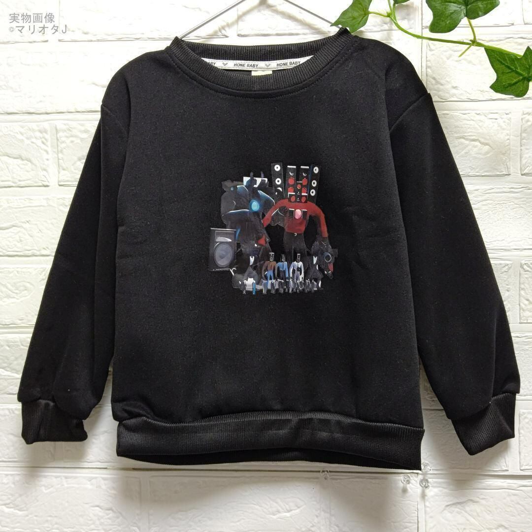 スキビディトイレ 長袖トレーナー セットアップA 110 120 130 140 150 キッズ黒ブラック トップス 上下セット服 タイタンカメラマン 子供
