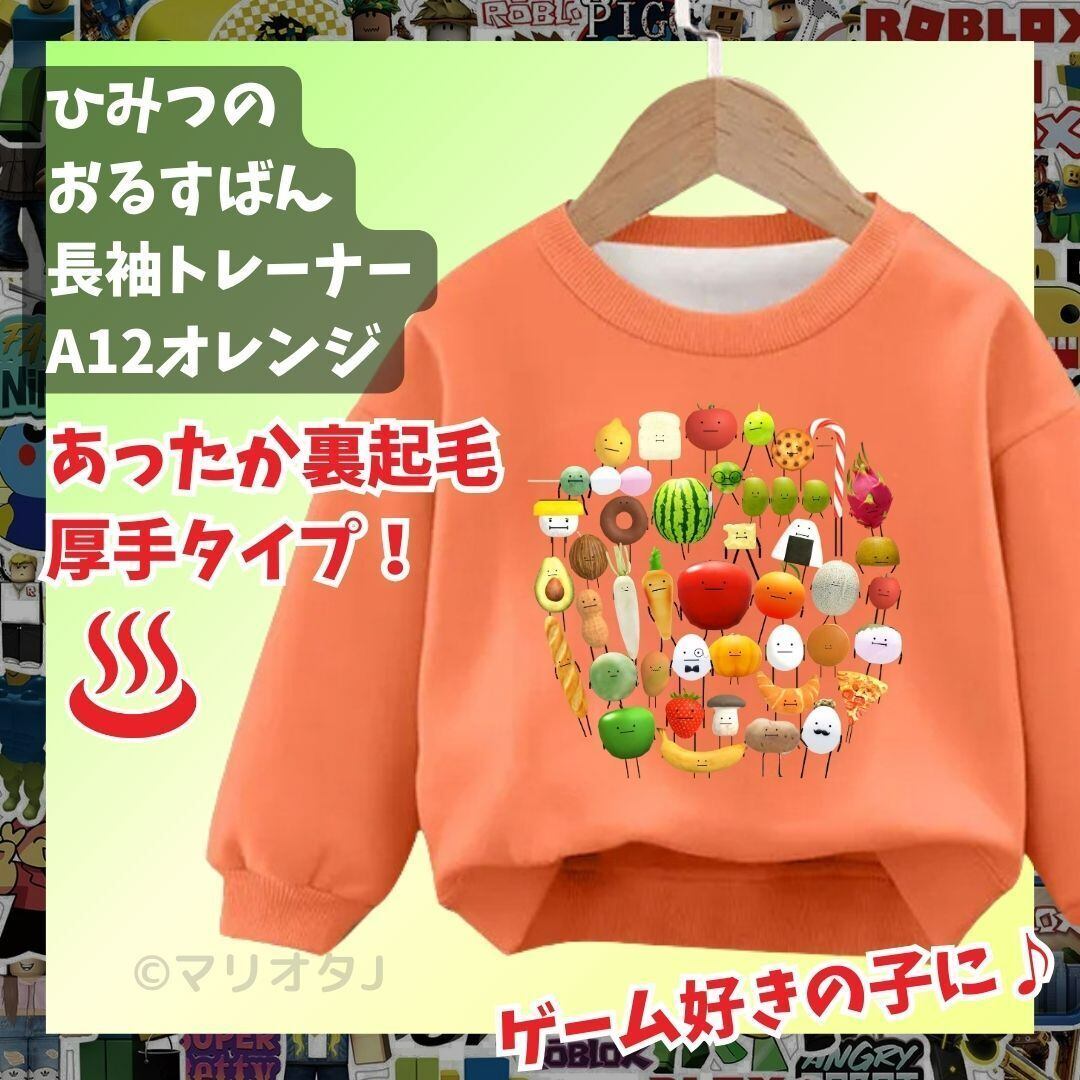 ひみつのおるすばん 長袖Tシャツ 厚手トレーナーオレンジ あったか冬用ROBLOXロブロックス 裏起毛タイプ トップス 100 110 120 130 140 150 子供服キッズ服 KK